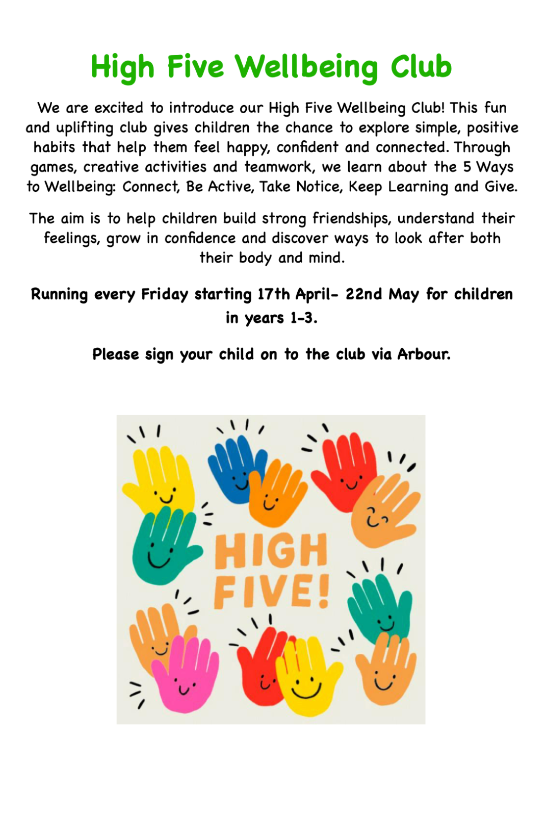 High-Five Wellbeing Club - Mrs Downer
