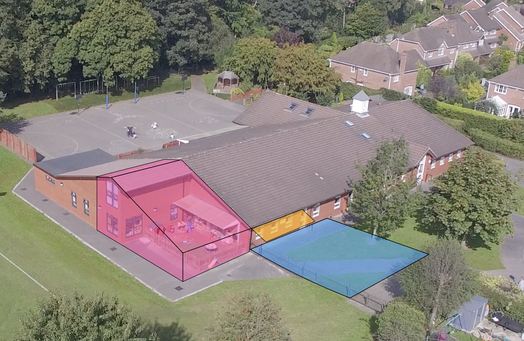 As a consequence, a new outdoor area for the Pre-School will be constructed at the front of the