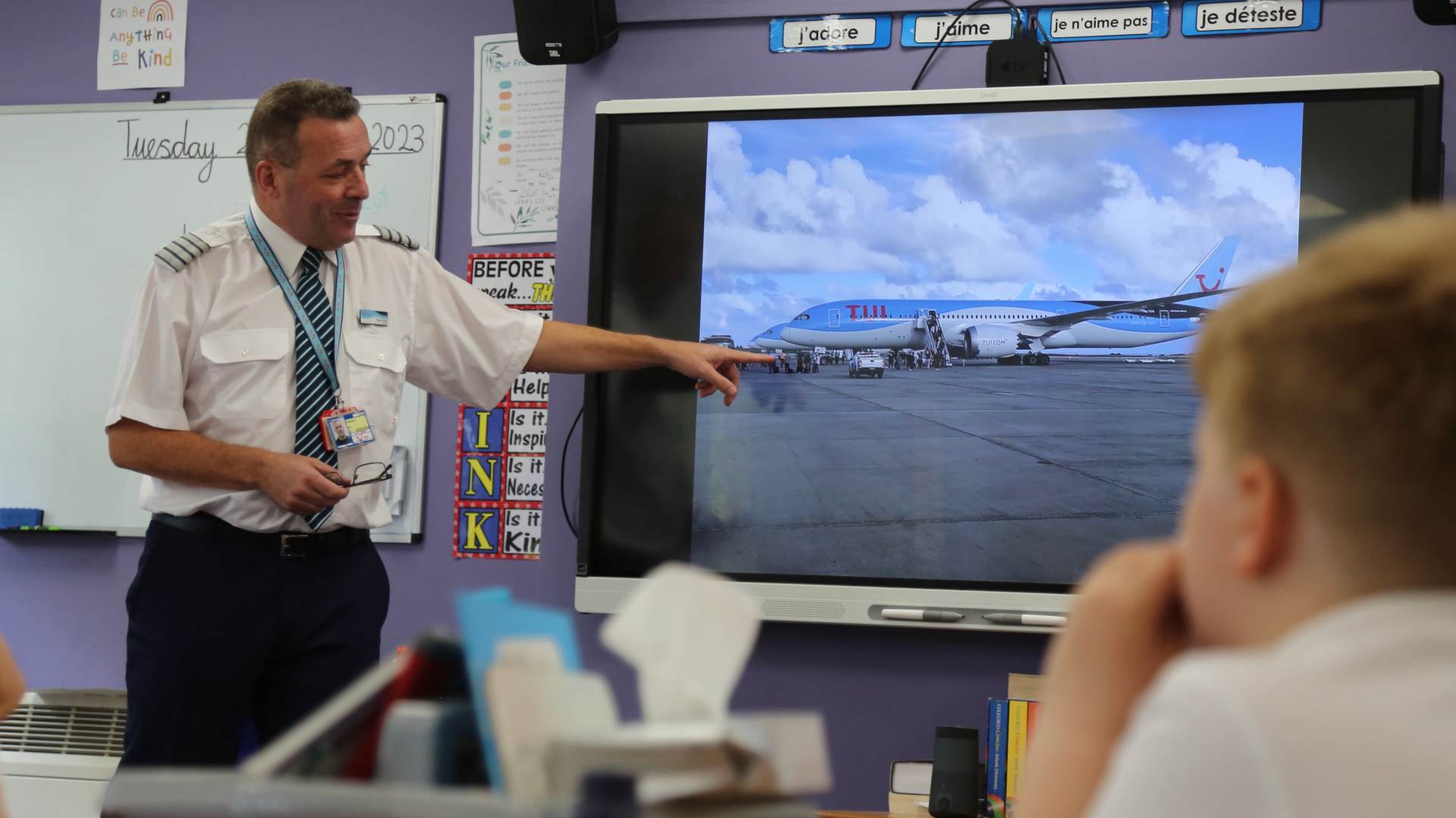 Pupils from Class 2 and Class 3 enjoyed spending time with Captain Pete Smith on Tuesday afternoon, who shared his experiences as an airline pilot.