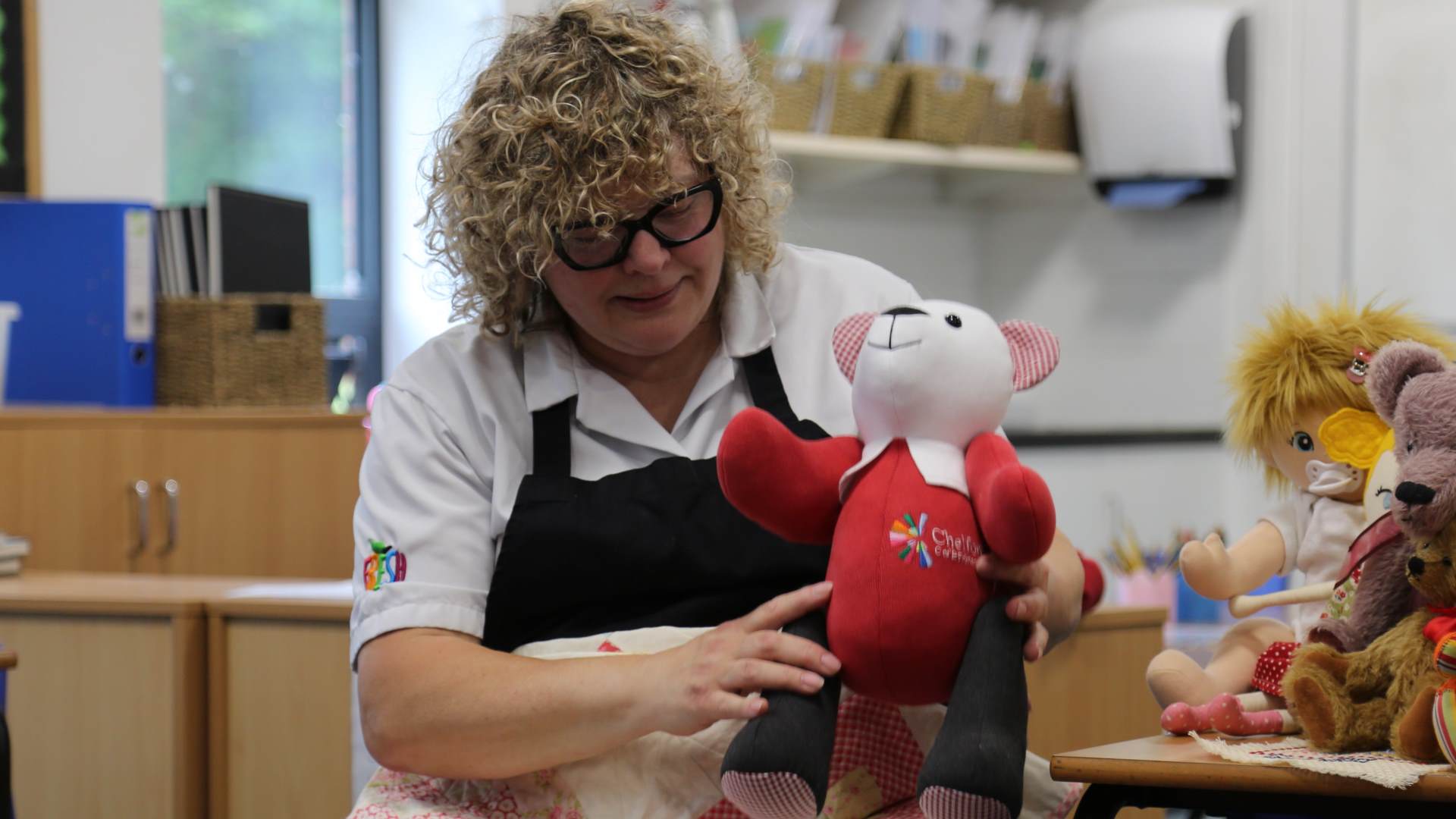 After preparing Thursday’s lunch for the pupils, Helen (our much-loved chef) popped down to Class 1 to share one of her other passions - needlework! When Helen isn’t occupied at Chelford CE Primary School, she is often busy getting creative with her needle and thread, and all manner of clever machines, producing a range of different products such as personalised handbags, blankets and soft toys.
