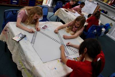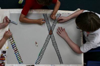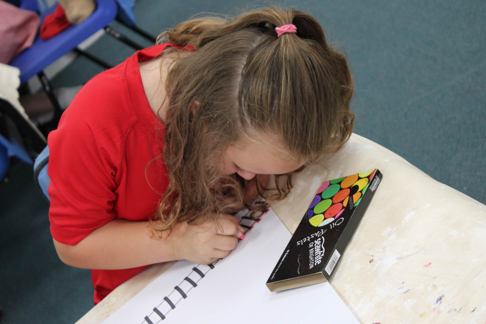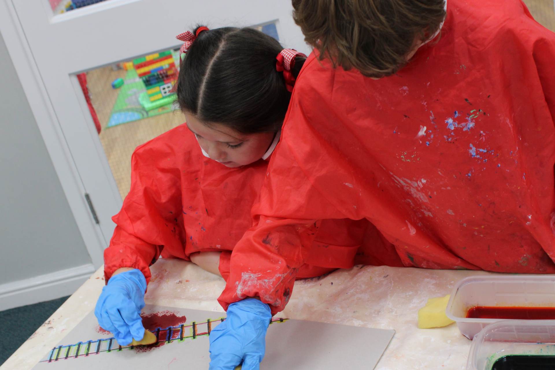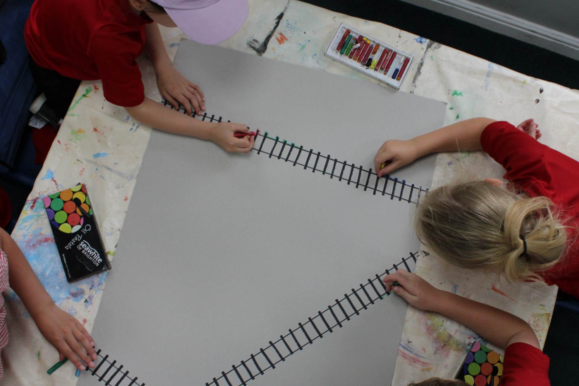 Class 1 pupils embarked on a visual time-travel adventure, creating a series of images depicting trains across the ages. From the earliest steam locomotives to modern high-speed trains, their artwork captures the changing designs, colours, and functions of rail transport. The children used a variety of materials, including oil pastel and brush inks to illustrate how trains have evolved while remaining a symbol of connection and progress.