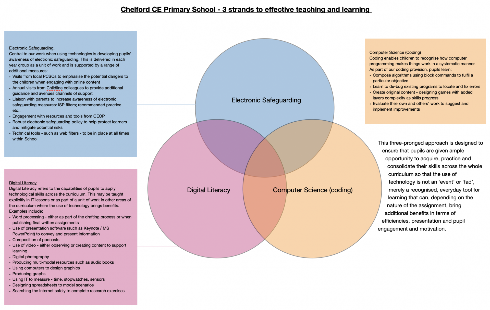 As idenitified in our over-arching document The Chelford Curriculum, we believe that the effective and safe use of technology can have a transformational impact on pupils' learning and enjoyment. As such, we are committed to ensuring that pupils have access to a wide range of tools and resources which enables them to make use of technology across the whole curriculum.