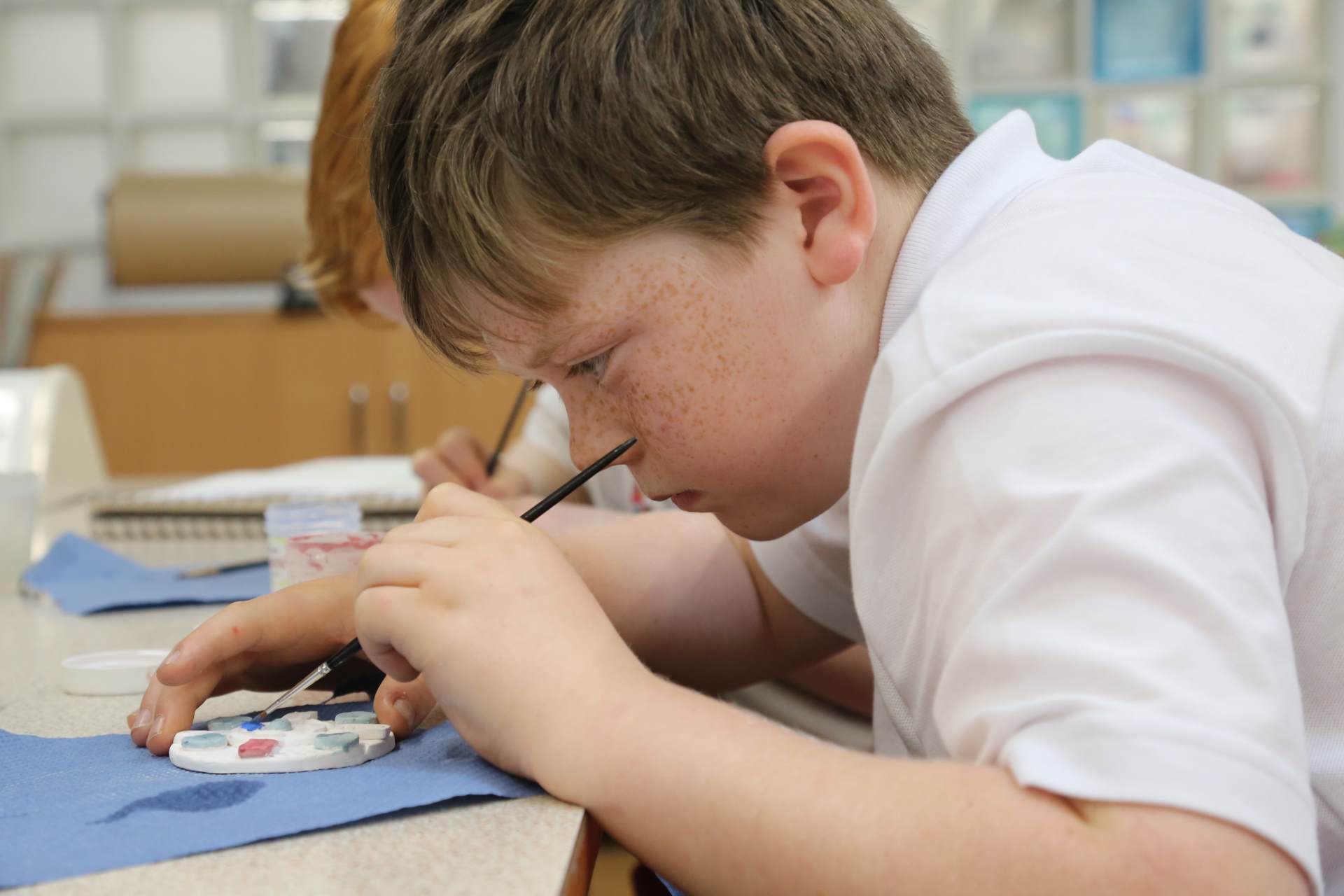 Hilly Kerr returned to school to help Class 3 pupils to complete the next step in their Saxon-inspired jewellery project. Regular readers will recall that pupils had previously sketched out and constructed their designs with clay. We were relieved that all pieces survived the initial firing in the kiln - which turned the clay from a soft, malleable brown into a rigid, white piece. On Wednesday, children applied their glazes. The next stage of the process is for the pieces to be fired once again before they are threaded and ready to wear. We can’t wait to see the finished jewellery pieces. As always, our heartfelt gratitude goes to Hilly for inspiring our pupils’ love of ceramics and providing such an enjoyable learning experience.