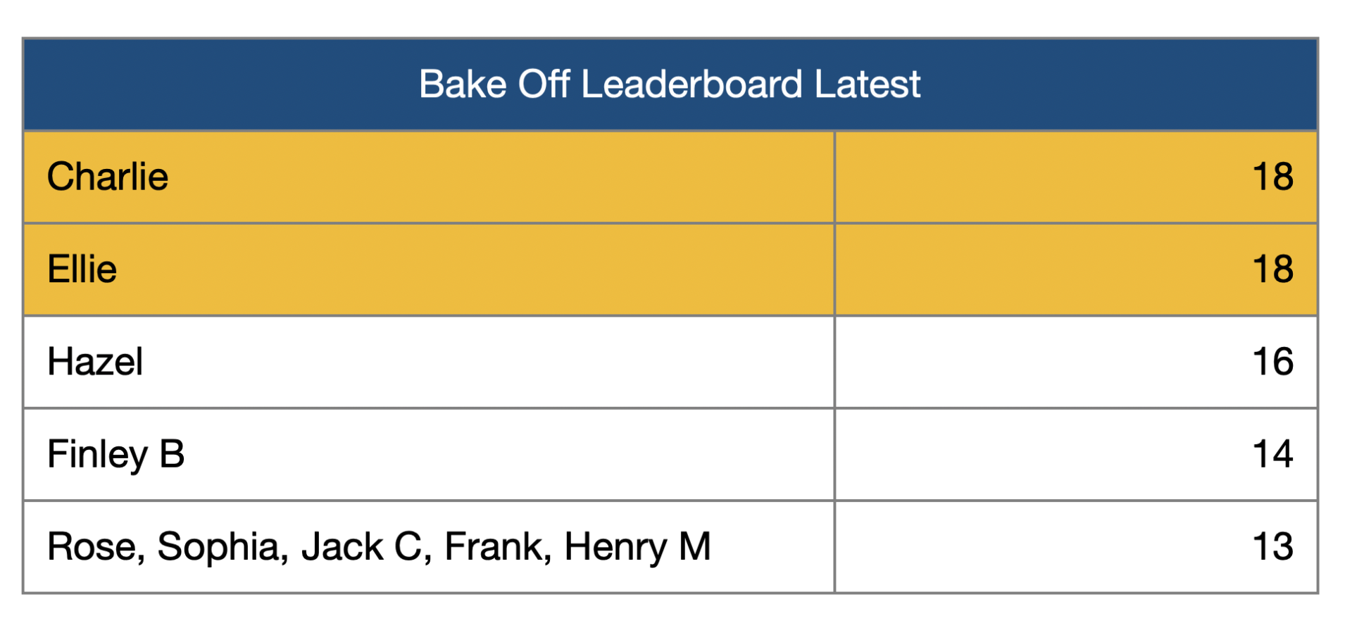 A phenomenal response to this week’s cookie challenge saw 25 entries submitted for week 2 of the Great Chelford Bake Off! This week’s star bakers were once again Ellie and Charlie - for the second week running - who each scored scored a fantastic 9/10. Judges were impressed with the near-perfect colour, texture and taste of their bakes! Congratulations to all who entered - the standard, as always, was extremely high!