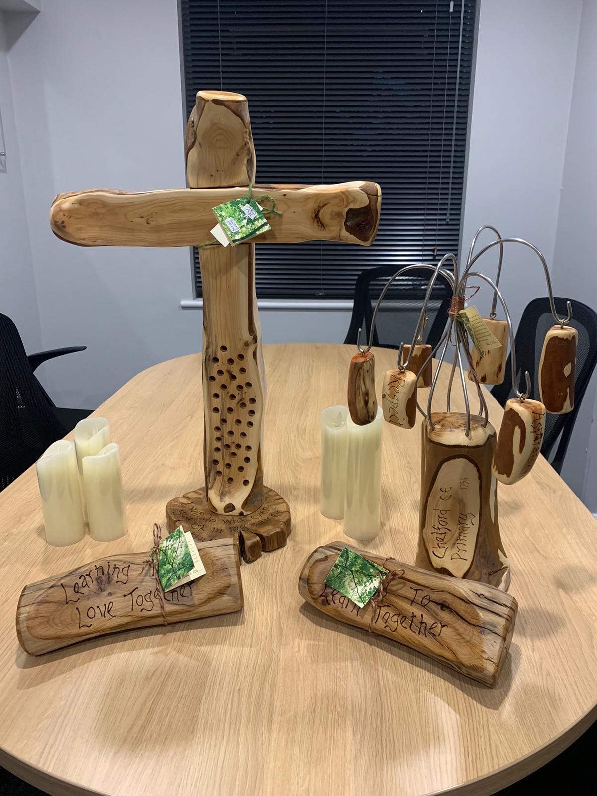 This week, we were delighted to take delivery of some bespoke carved items which help to celebrate the Christian profile of the school. Mr Brady shared the items with pupils in collective worship on Tuesday. Two blocks bear our school strapline ‘Learning to Love Together’ / ‘Loving to Learn Together’ and our values tree displays each of our 6 school values - kindness, resilience, forgiveness, inclusion, aspiration and respect. Finally our scroll cross offers the opportunity for children to write their own prayers on scrolls and insert them into the spaces on the cross. These can then be shared with our school community in acts of collective worship. We hope that our new display serves as a place that children can use for reflection and contemplation.